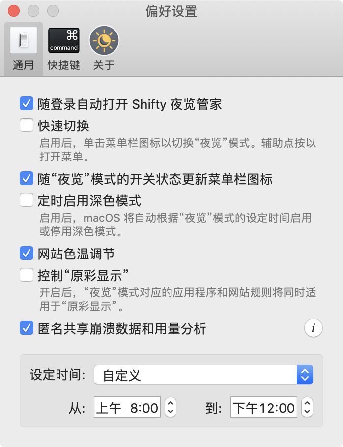 - 为常用的 Shifty 夜览管家功能设置全局键盘快捷方式